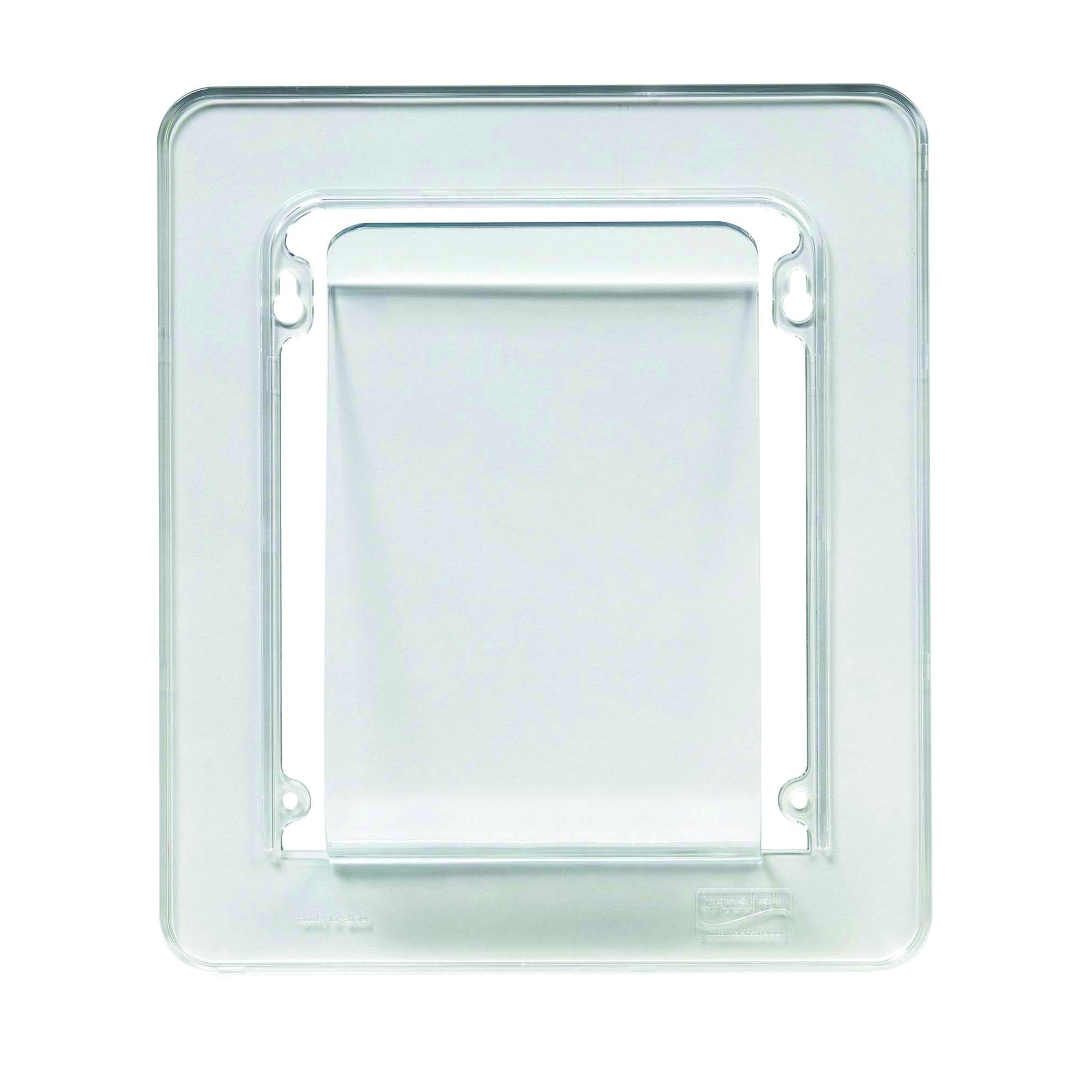 Bruchsicherer Universalprospekt- und Aktenhalter mit unter Druck stehender, bruchsicherer Lasche mit Federung. Hält die Unterlagen gerade. Zur Wandmontage. Größe: 235 x 272 x 35 mm. Material: Polystyrol.