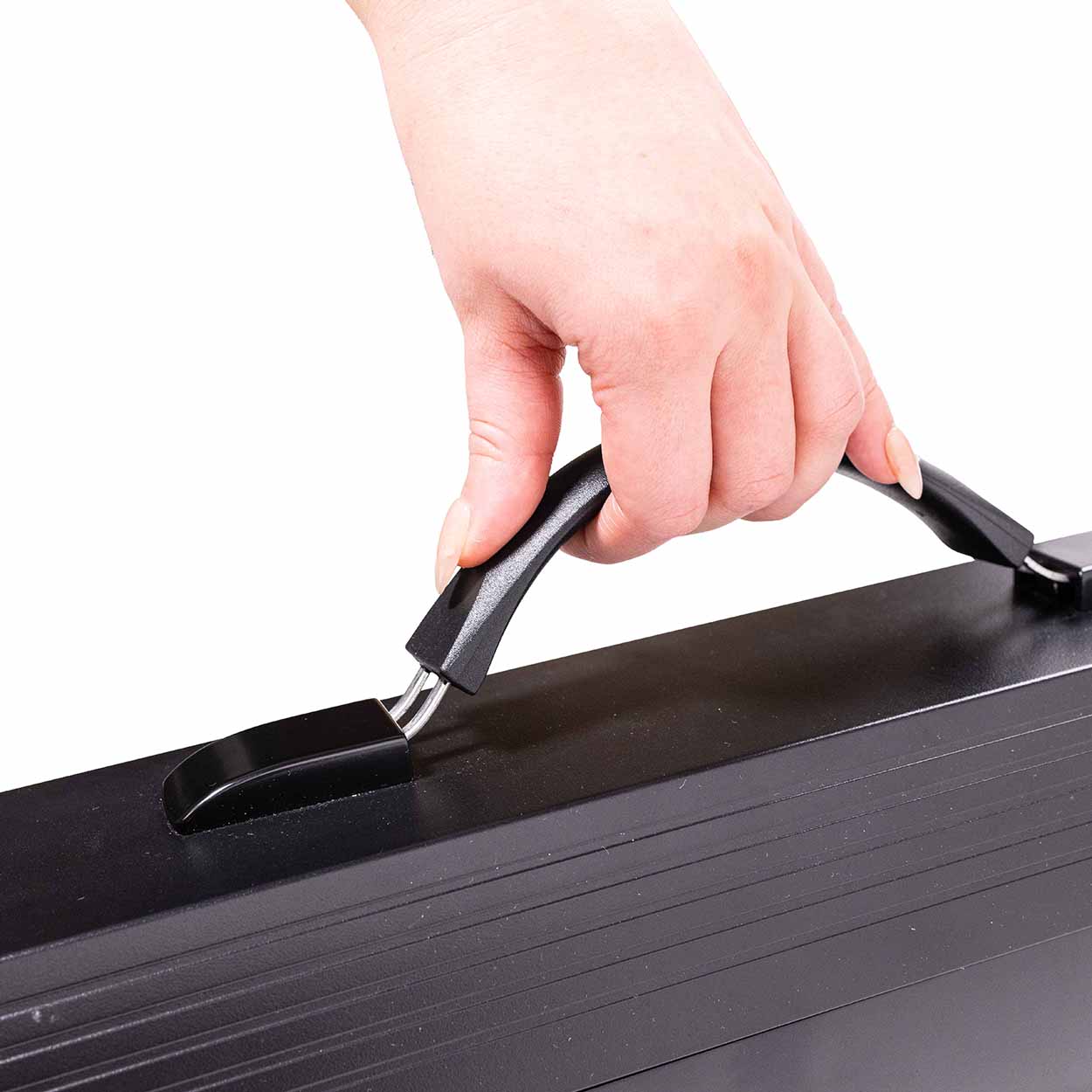 • Komfortables Transportieren, mit leichtem Aluminiumgehäuse + Tragegriff