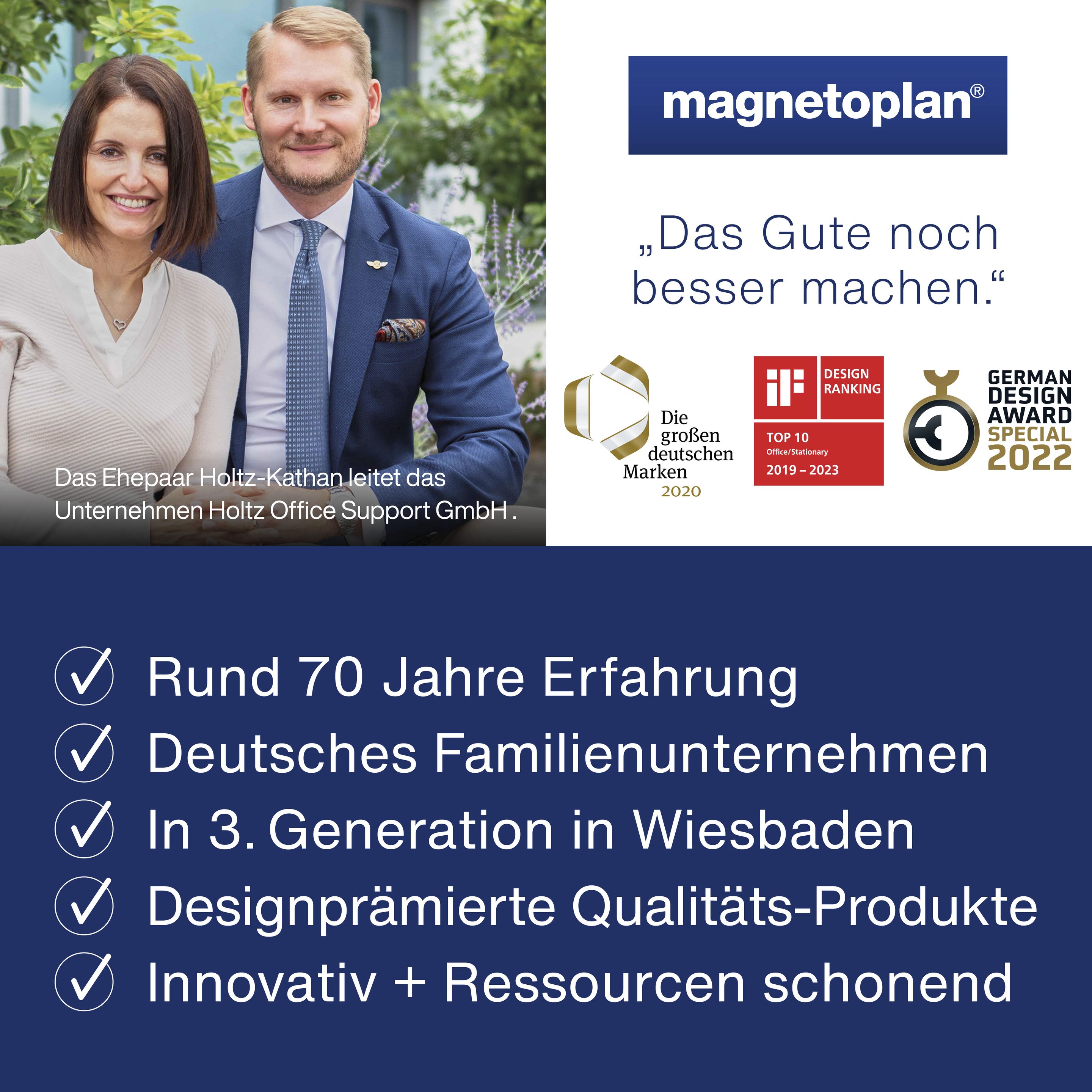 magnetoplan design whiteboard CC, made in Europe. Modern, high-quality whiteboard in a simple, elegant design. Awarded the German Design Award Special 2016. Ideal for long-term use: